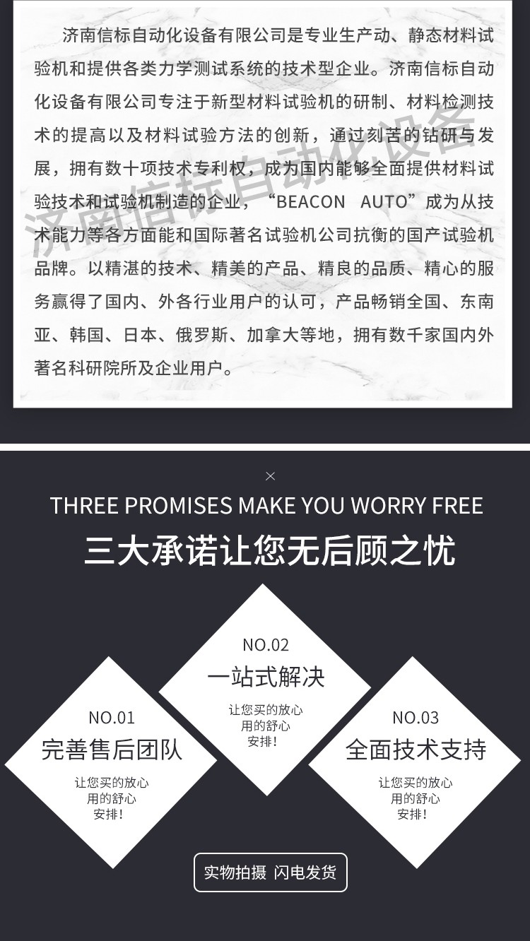 濟南信標自動化設備有限公司主要生產:動靜態萬能疲勞試驗機,接骨板彎曲試驗機,縫合線拉伸疲勞試驗機,髖膝關節磨損試驗機,電子萬能試驗機、液壓萬能試驗機、巖石三軸、四軸,電液拉力試驗機,材料試驗機,高低溫蠕變,高低頻疲勞,拉伸、扭轉、杯突等二十多個系列兩千多個的品種。