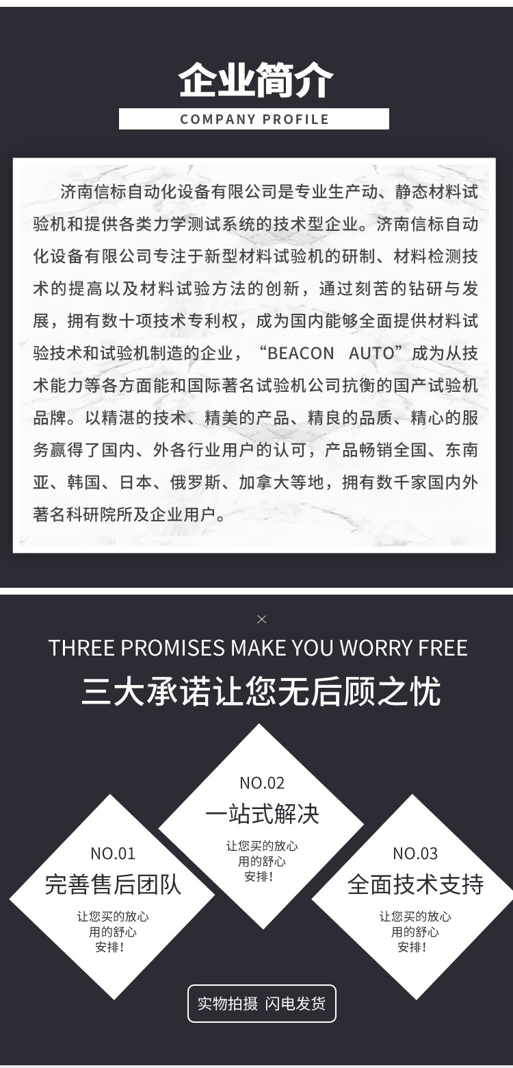 濟南信標自動化設備有限公司主要生產:動靜態萬能疲勞試驗機,接骨板彎曲試驗機,縫合線拉伸疲勞試驗機,髖膝關節磨損試驗機,電子萬能試驗機、液壓萬能試驗機、巖石三軸、四軸,電液拉力試驗機,材料試驗機,高低溫蠕變,高低頻疲勞,拉伸、扭轉、杯突等二十多個系列兩千多個的品種。