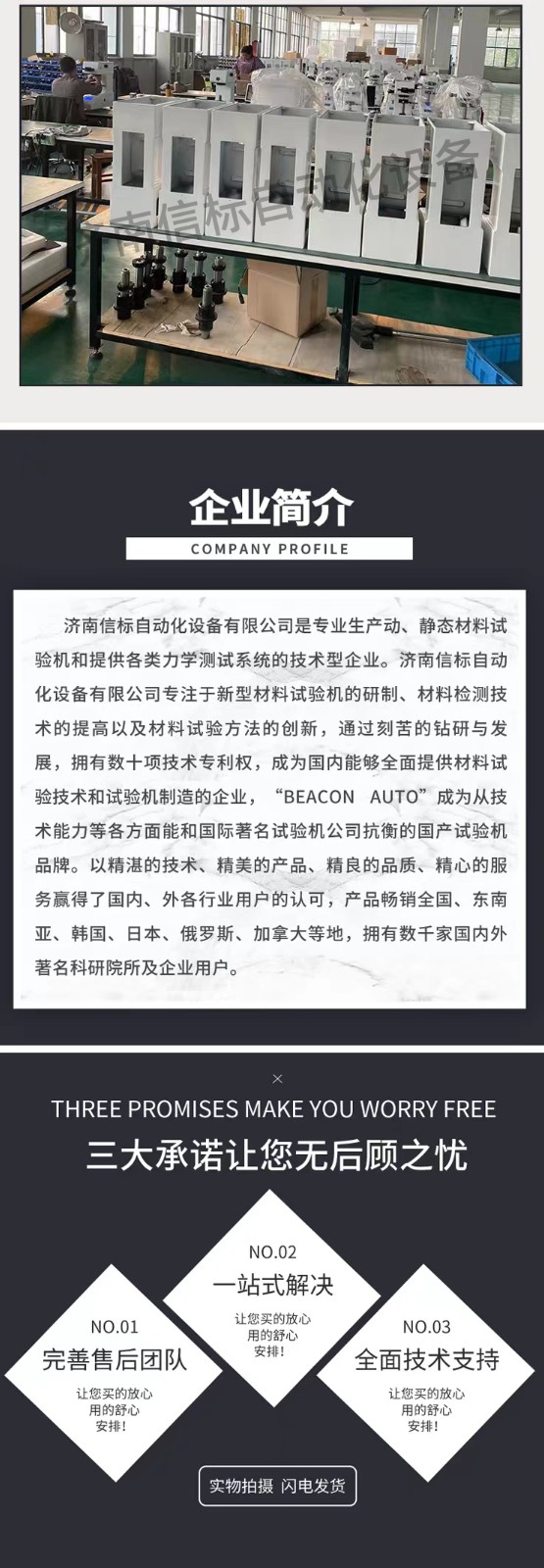 濟(jì)南信標(biāo)自動化設(shè)備有限公司主要生產(chǎn):動靜態(tài)萬能疲勞試驗(yàn)機(jī),接骨板彎曲試驗(yàn)機(jī),縫合線拉伸疲勞試驗(yàn)機(jī),髖膝關(guān)節(jié)磨損試驗(yàn)機(jī),電子萬能試驗(yàn)機(jī)、液壓萬能試驗(yàn)機(jī)、巖石三軸、四軸,電液拉力試驗(yàn)機(jī),材料試驗(yàn)機(jī),高低溫蠕變,高低頻疲勞,拉伸、扭轉(zhuǎn)、杯突等二十多個系列兩千多個的品種。