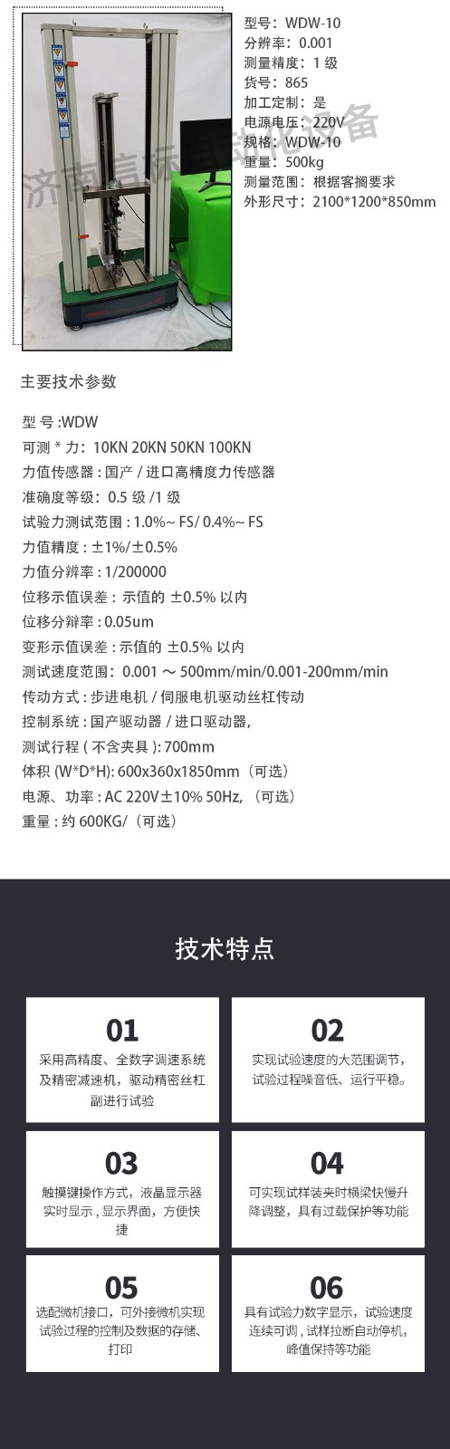 可測試驗力: 10KN 20KN 50KN 100KN