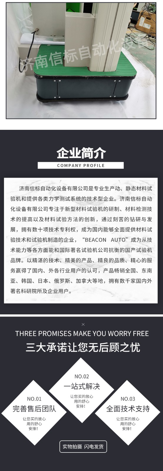 濟南信標自動化設備有限公司主要生產:動靜態萬能疲勞試驗機,接骨板彎曲試驗機,縫合線拉伸疲勞試驗機,髖膝關節磨損試驗機,電子萬能試驗機、液壓萬能試驗機、巖石三軸、四軸,電液拉力試驗機,材料試驗機,高低溫蠕變,高低頻疲勞,拉伸、扭轉、杯突等二十多個系列兩千多個的品種。