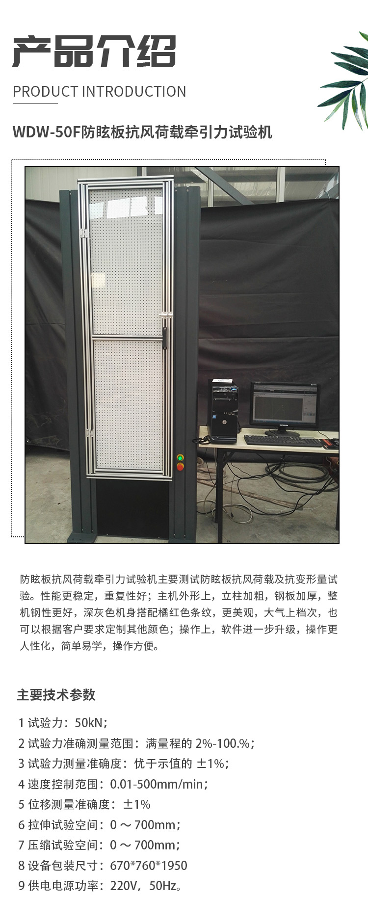 防眩板抗風荷載試驗機 ? 防眩板整體力學性能牽引力試驗機