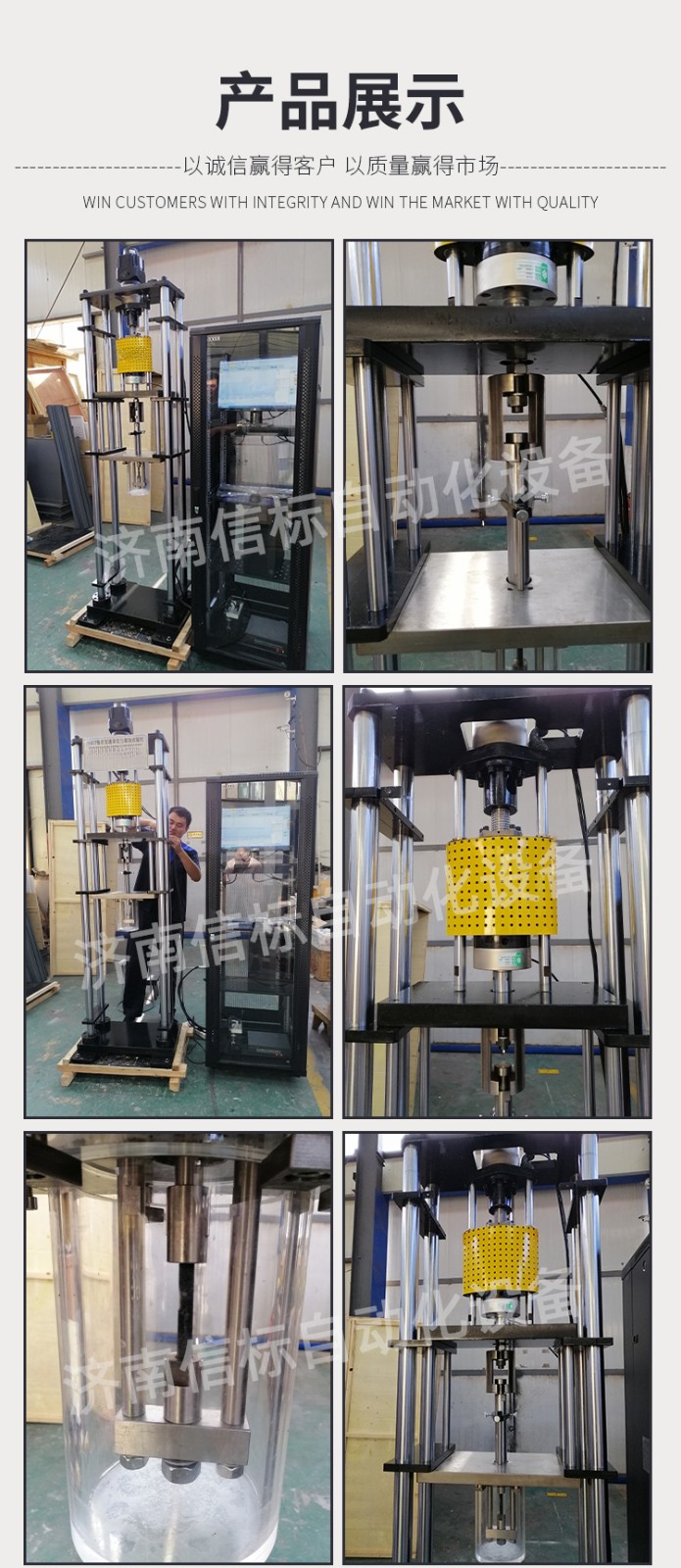 濟南信標自動化設備有限公司主要生產:動靜態萬能疲勞試驗機,接骨板彎曲試驗機,縫合線拉伸疲勞試驗機,髖膝關節磨損試驗機,電子萬能試驗機、液壓萬能試驗機、巖石三軸、四軸,電液拉力試驗機,材料試驗機,高低溫蠕變,高低頻疲勞,拉伸、扭轉、杯突等二十多個系列兩千多個的品種。