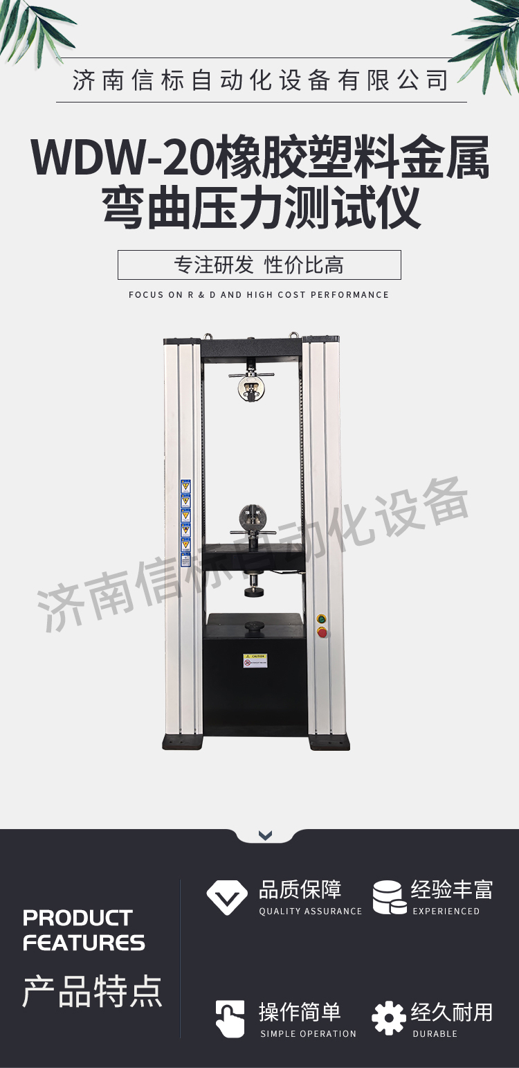 當前位置:首頁 > 產品中心 > 微機控制電子萬能試驗機 > WDW-20橡膠塑料金屬彎曲壓力試驗機